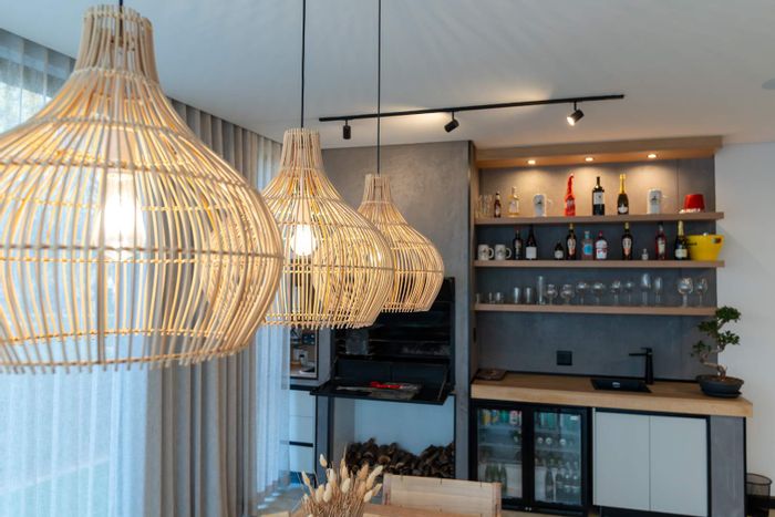 Entertain effortlessly in Eye of Africa Estate, Johannesburg South, with sunlit double-volume interiors, designer kitchen and landscaped pool terrace — four bedrooms, three-and-a-half baths and included custom furniture.