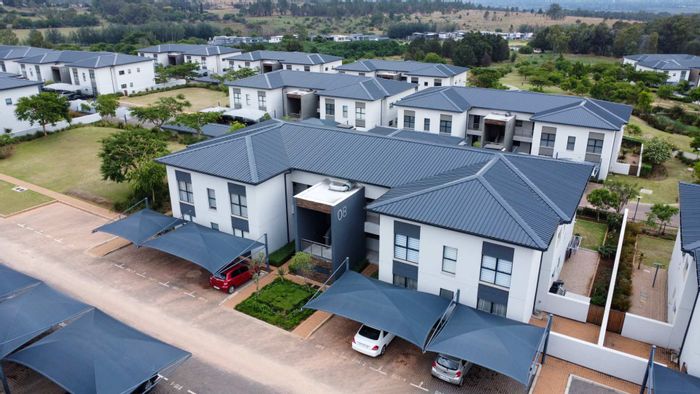 Elevated Haymarket living in Eye of Africa estate with estate amenities and open-plan living flowing to a covered balcony with built-in gas braai — two beds, two baths, two covered parking.
