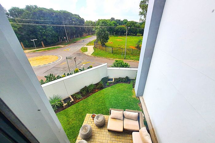 Experience bushveld-like tranquility and privacy in a contemporary three-storey home, with a versatile top-floor entertainment space, two en-suite bedrooms, a study and covered double parking.