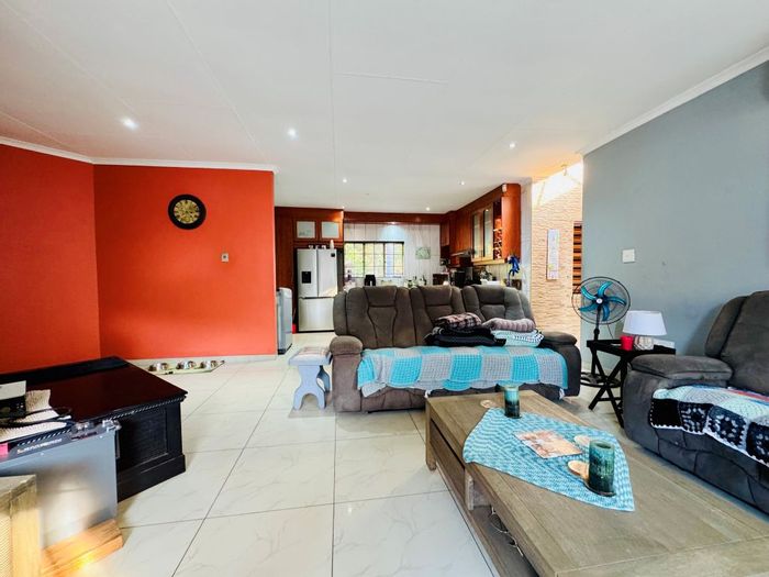 Sectional-title home on a generous stand with private, pet-friendly garden and secure living—open-plan lounge, modern en-suite, prepaid electricity, alarm and automated double garage; three beds, two baths.