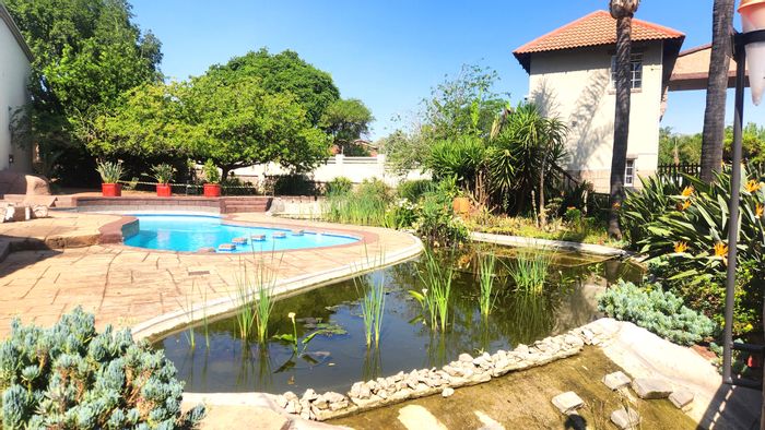 Entertainer's paradise in Faerie Glen with flowing indoor-outdoor spaces, pool, lapa and boma — dual kitchens and sunken TV lounge. Four bedrooms, three baths and single garage.