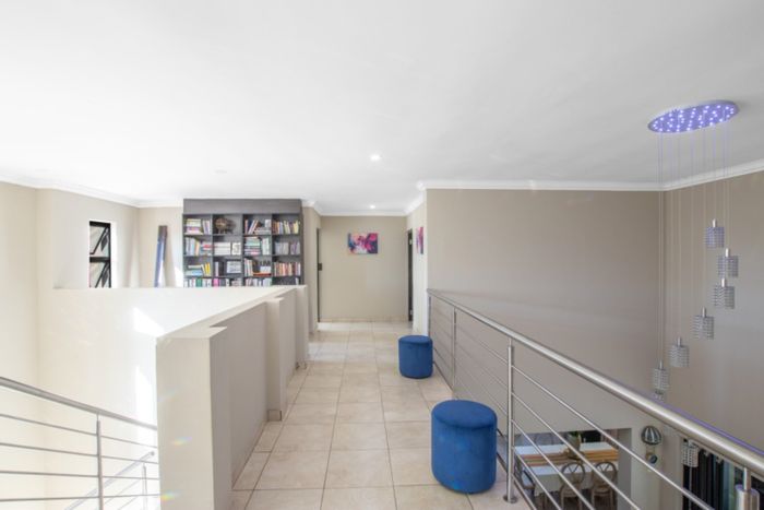 Entertainer's lifestyle against the Magaliesberg in Florauna, offering panoramic views, multi-level living and an entertainment zone with built-in braai and jacuzzi. Six bedrooms, 3.5 baths, double garage.