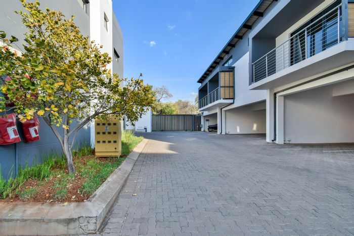 Architectural butterfly-roof townhouse with double-volume entrance, floor-to-ceiling windows and private garden entertaining area with braai and hot tub — close to major routes, shops and top schools. 3 beds, 3 baths.