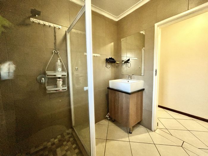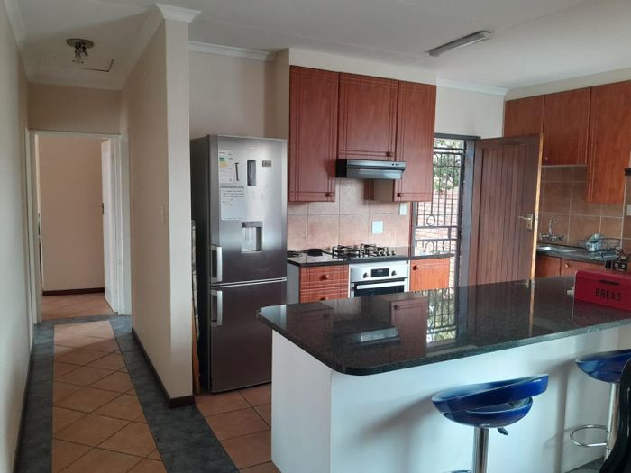 Enjoy secure Pretoria East living in Mooikloof Ridge with access-controlled estate, pools, braai and walking trails; semi-detached townhouse offers modern granite kitchen, king-size main ensuite, double garage.