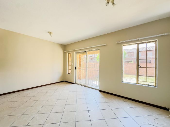 Relaxed estate living in Mooikloof Ridge, Pretoria East — easy access to schools and shops, open-plan living with a private patio garden. Three bedrooms, two baths.