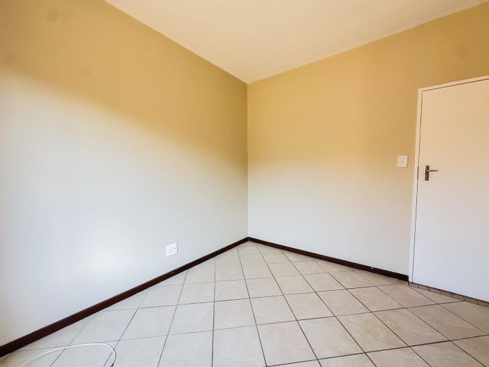 Relaxed estate living in Mooikloof Ridge's secure Highlands Complex, with a private garden and open-plan layout, ideal for families or investors, with two bedrooms, one bathroom and lock-up garage.