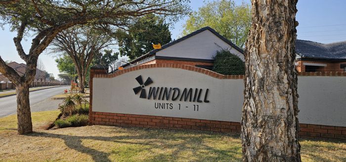 Two bedrooms, one bathroom townhouse in Windmill complex, 82 m², with a single garage and communal amenities.