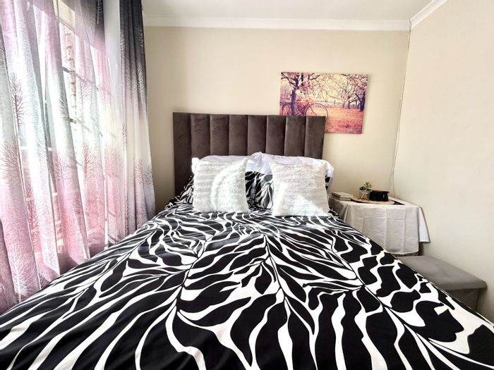 Relaxed, secure cul-de-sac living in Sable Mansions, opposite a shopping centre and close to Pretoria East amenities. Sunny enclosed patio with private garden; two bedrooms, one bathroom and single garage.