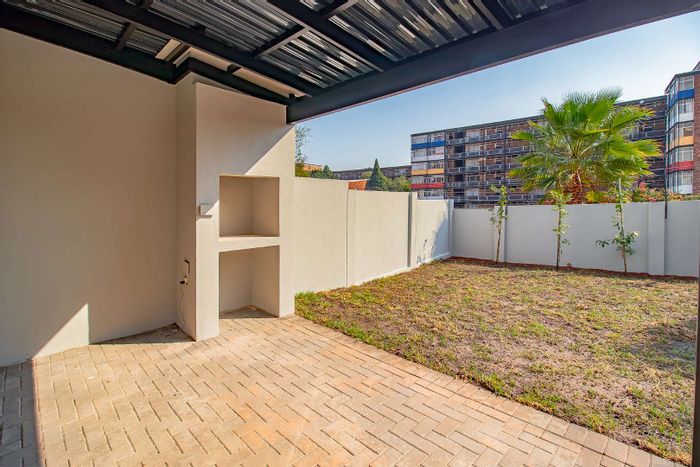 City-edge living in Muckleneuk, minutes from Pretoria CBD and UNISA, with open-plan living flowing to a covered patio and built-in braai plus private garden; two bedrooms, three baths, double garage.