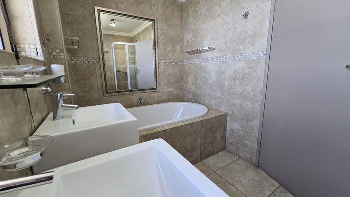 Relax in sunlit, spacious townhouse near top Pretoria schools and Grove Mall — modern granite kitchen, private garden and patio, three bedrooms, 2.5 baths and single garage.