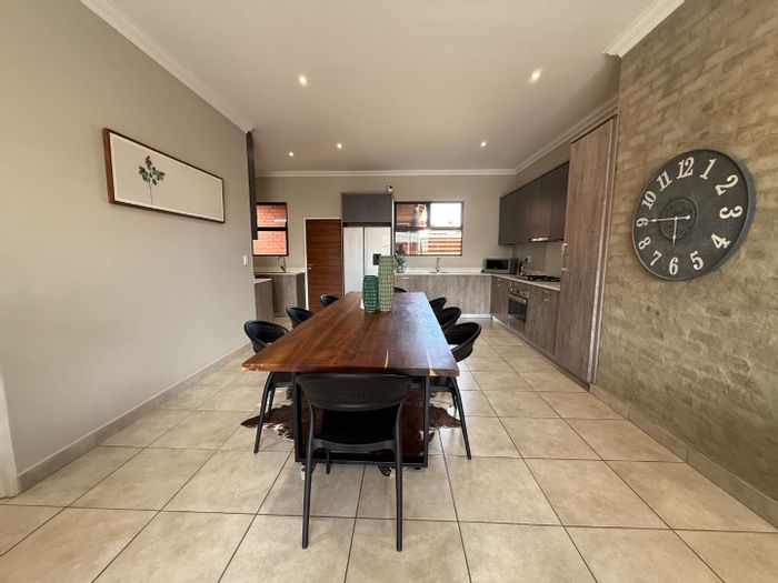 Tranquil estate living with lakeside walkways and easy N1/N4 access; entertainer's patio and boma, three bedrooms, four bathrooms and double garage.