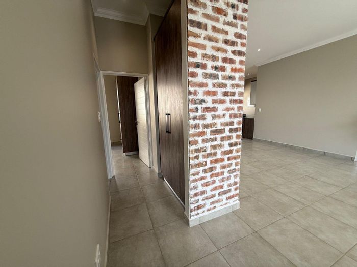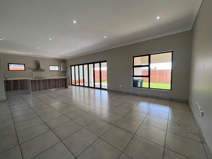 Relaxed estate living in Six Fountains Estate with nature trails and catch-and-release fishing; open-plan home opens to an enclosed patio with built-in braai. Three bedrooms, two bathrooms, double covered parking.
