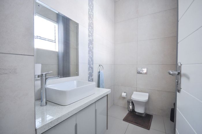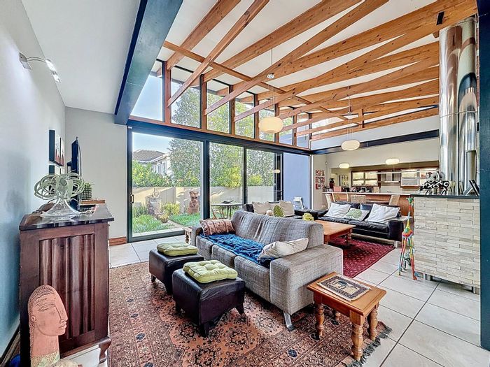 Entertain effortlessly with double-volume living and a designer kitchen in a secure estate, private garden and flatlet with garden access — three bedrooms, three baths, double garage.