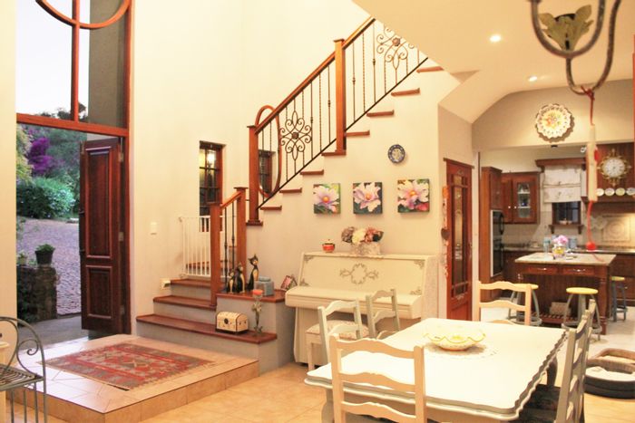 Tranquil country living in Vlakplaats, close to Fourways Mall with quick N14 access — hilltop, castle‑like setting on 12ha with expansive garden and built‑in braai; four bedrooms, four baths.