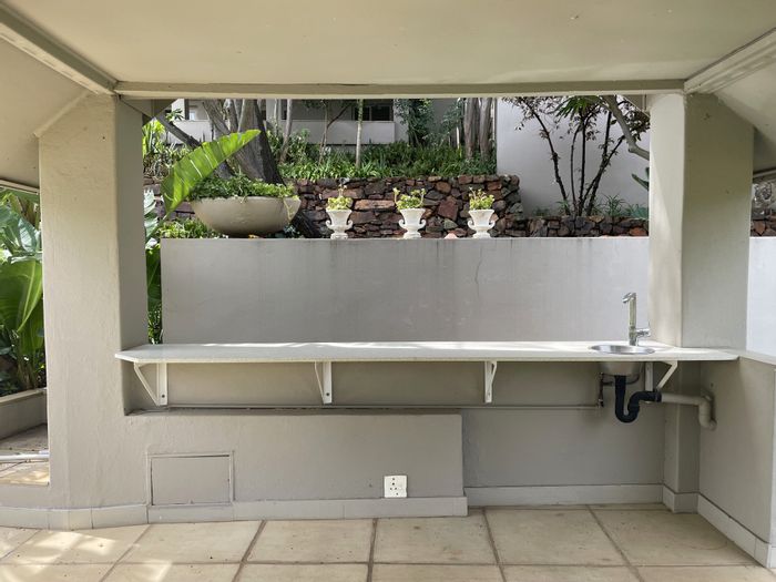 Secure boomed-off estate with covered patio and built-in braai overlooking a sparkling pool, large garden and lapa with wine cellar — fireplace lounge, study; 3 beds, 2.5 baths, double garage.