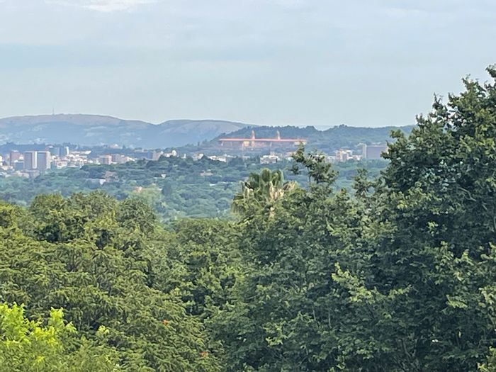 Hilltop views in Waterkloof Ridge amid Jacaranda-lined streets, minutes from top schools, malls and R21/N1 — 4,011m² stand with unapproved plans for six sectional-title homes.