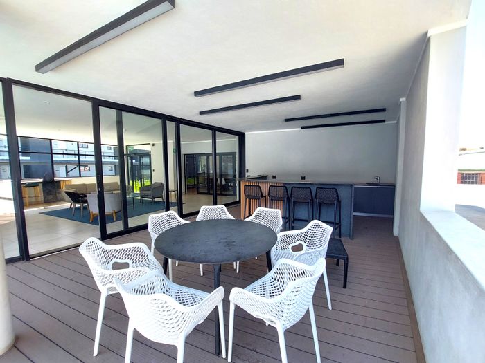 Enjoy urban convenience in Waterkloof on Main with garden and gas braai, sleek kitchen with Smeg hob, communal pool/bar and full backup electricity—two bedrooms, two bathrooms.