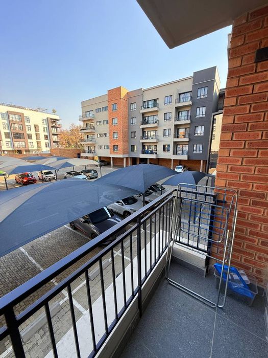 Last available ultra-modern apartment in a prestigious Pretoria estate near Menlyn and Hatfield, with private balcony views, solar inverter for reliable power, pool, gym — 2 beds, 2 baths, parking.