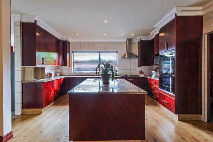 Riverfront living in Blue Water Creek Estate, Pretoria East, with private creek access and resort style outdoor entertaining — pool, sauna and two gourmet kitchens; five bedrooms, five garages.