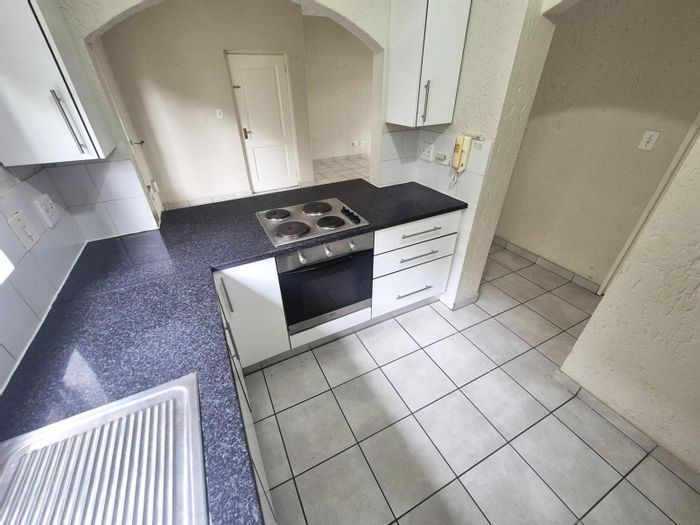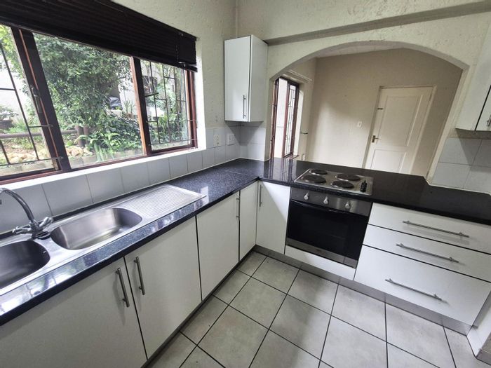 Relax in a ground-floor Fourways retreat with private garden and covered patio featuring a built-in braai, open-plan kitchen with granite counters, two bedrooms, one bath and undercover parking.