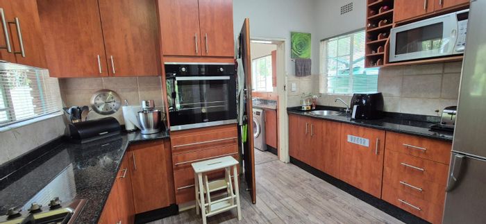 Relaxed family living in Strijdom Park, Randburg — poolside entertaining with a separate office/energy building, lush garden, three bedrooms, three bathrooms and covered parking.