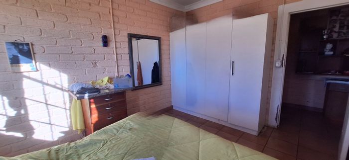 Private garden oasis in Finsbury's secure, well-kept complex — open-plan kitchen, two bedrooms with built-in cupboards and bath; walled, electrified fencing and covered parking. R445,000
