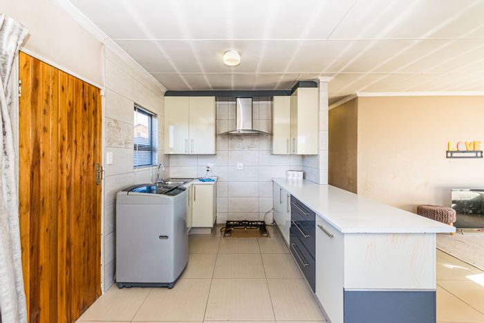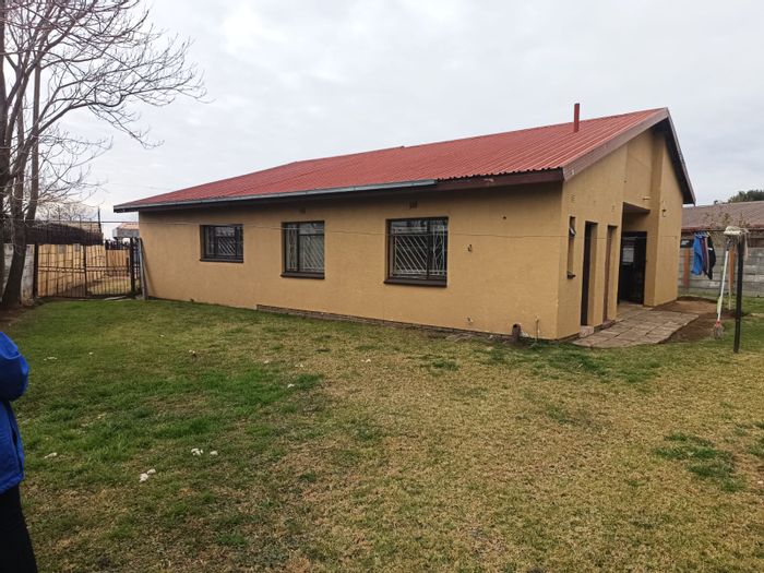 Family-friendly suburban living in Homelake, Randfontein with easy access to malls and schools; large level walled garden for kids and pets, three bedrooms, one bathroom and five covered parking.