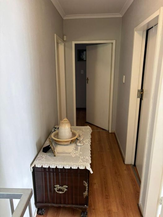 Pet-friendly, secure estate living in Amorosa with a granite-top kitchen flowing to lounge and covered patio with built-in braai; upstairs main suite with private balcony. 3 beds, 2.5 baths.