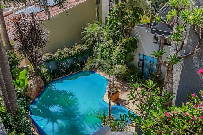 Estate living in The Palms, Constantia Kloof — enjoy valley views and a tropical landscaped garden with pool and garden entertainment room, plus a modern island kitchen.