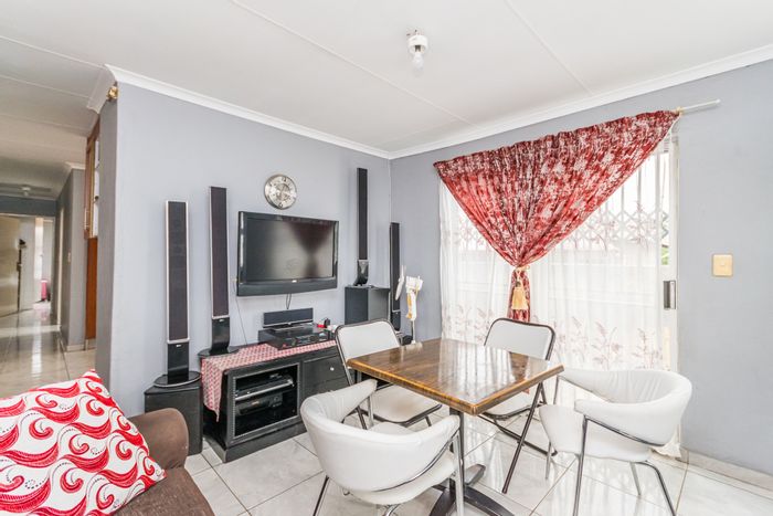 Secure family living in Cosmo City's gated extension, minutes from Jackal Corner Mall and schools, featuring an open-plan kitchen and three bedrooms, two bathrooms plus double lockable garage.