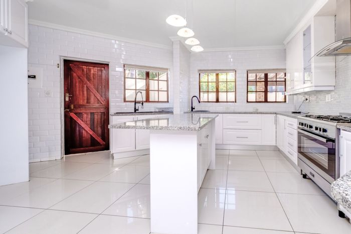 Entertain effortlessly in a U-shaped home centred on a pool and terraced garden, featuring a bar, enclosed patio with built-in braai, granite kitchen and scullery — 4 beds, 3 baths.