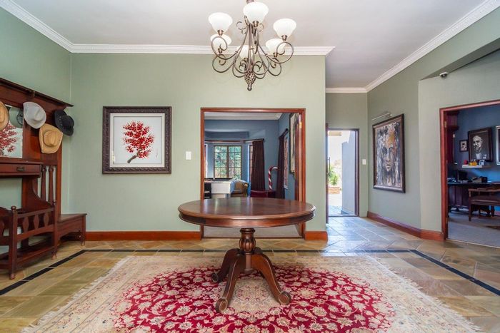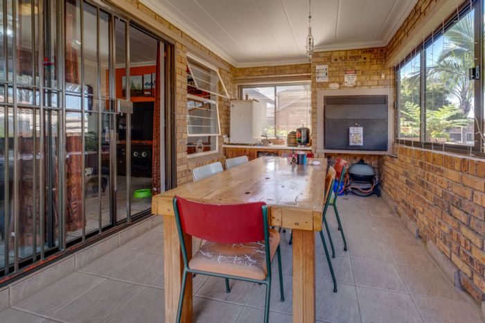 Effortless indoor–outdoor family living in a quiet, family-friendly neighbourhood, with a lush garden, pool and built‑in braai. Six bedrooms, upmarket kitchen, scullery, three garages, solar.
