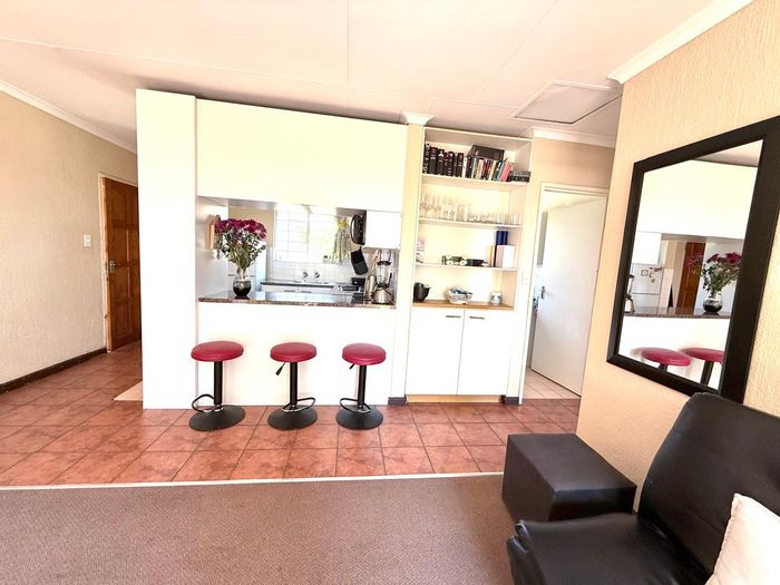 Low-maintenance lock-up-and-go living in Radiokop near Wilgeheuwel/Honeydew — quiet, secure complex with large private garden ideal for pets and entertaining; two-bedroom, two-bath, renovated open-plan kitchen, double garage.