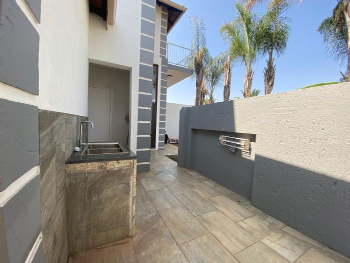 Entertainer’s double-storey in sought-after Roodekrans Ext 13, set on 1,137 m² with palm-fringed pool, Jacuzzi room, bar and games area — spacious family living, 5 beds, 6 baths.