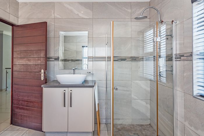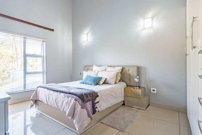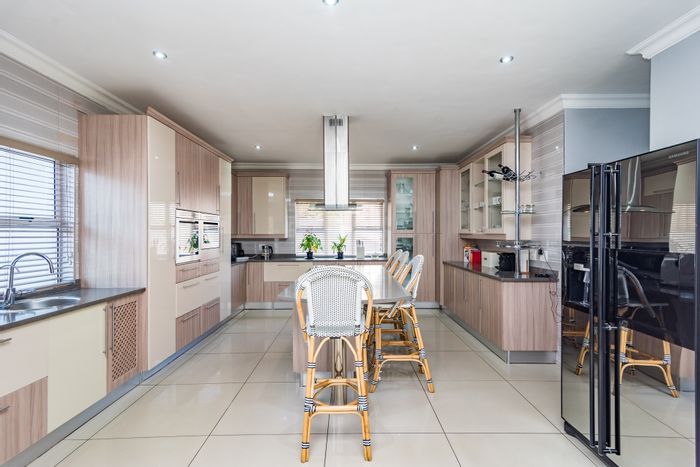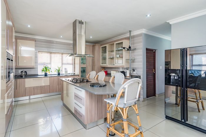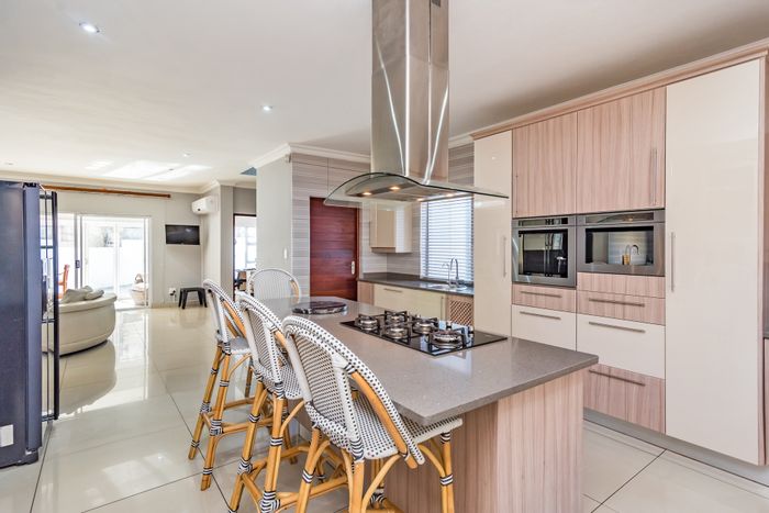Refined estate living within a prestigious, secure enclave — light-filled interiors, gourmet designer kitchen, enclosed entertainment patio overlooking manicured garden and pool; four en‑suite bedrooms, ample parking.