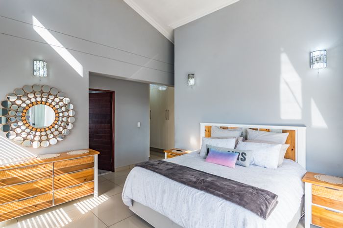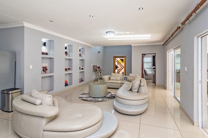 Elevated family living in Ruimsig Country Estate, with valley and Featherbrooke views, double-volume living, braai room flowing to pool and deck, and a private master floor with pajama lounge.