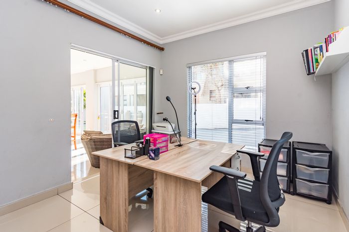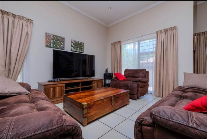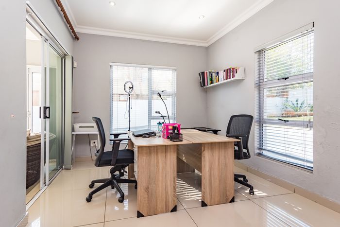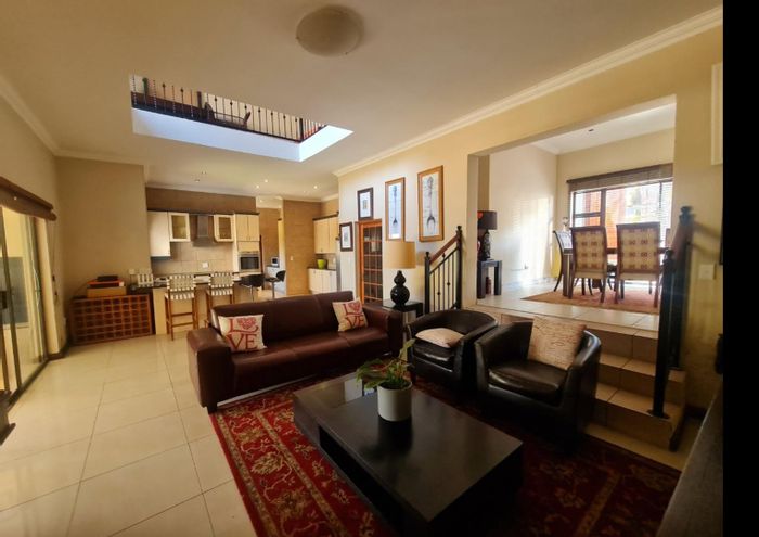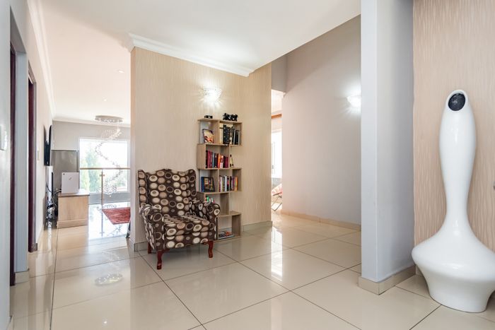 Located in Ruimsig Country Estate, this family home features four bedrooms, open-plan living, and a solar-heated pool.