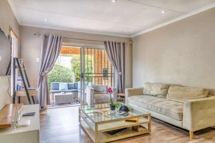 3 bedrooms, 2 bathrooms, 2 garages, 142 m² townhouse with spacious patio and garden in a peaceful complex.