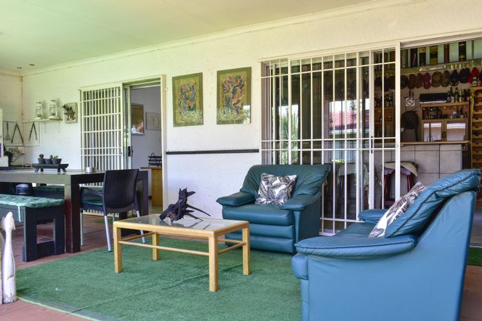 Entertainer's family retreat in Weltevredenpark with heated swimming pool and undercover patio, bay-windowed family room and large Wendy house. Four bedrooms, two baths and double garage.