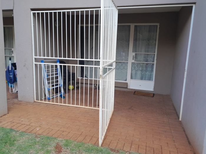 Relaxed urban living with easy access to schools, shops and transport in Weltevreden Park/Randpark Ridge; private garden and covered patio, open-plan kitchen, two bedrooms, one bath, double garage.