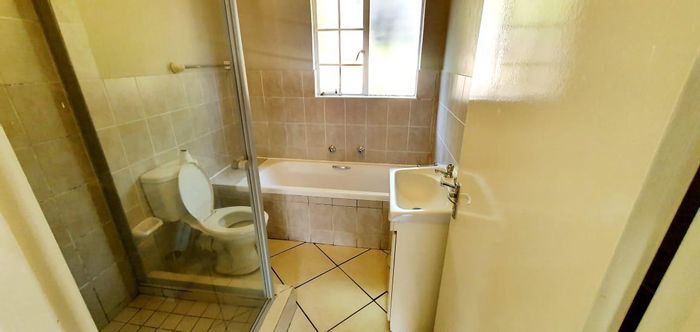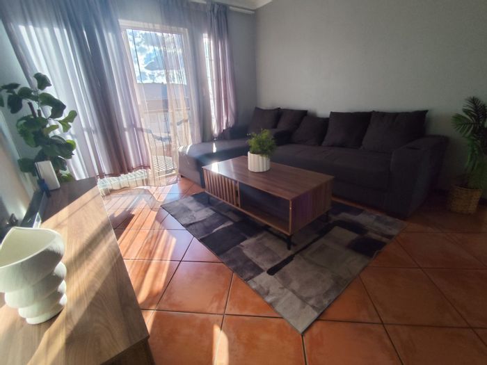 Relaxed suburban living with easy access to shops, parks and schools in Wilgeheuwel, Roodepoort; private garden, modern kitchen and two bedrooms, one bath with double covered parking.
