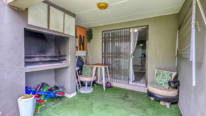 Low-maintenance ground-floor living in a secure gated complex with 24-hour guardhouse; enjoy a balcony with built-in braai, two tiled bedrooms, one bathroom and covered parking.