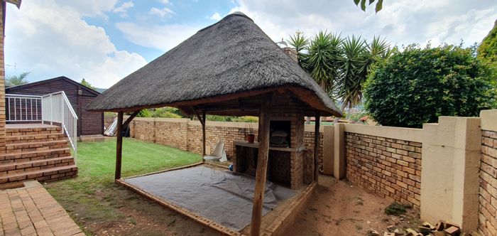 Enjoy relaxed indoor-outdoor living in a pet-friendly townhouse with manicured garden and thatch lapa with built-in braai, open-plan kitchen, three bedrooms, two bathrooms and two covered parking bays.