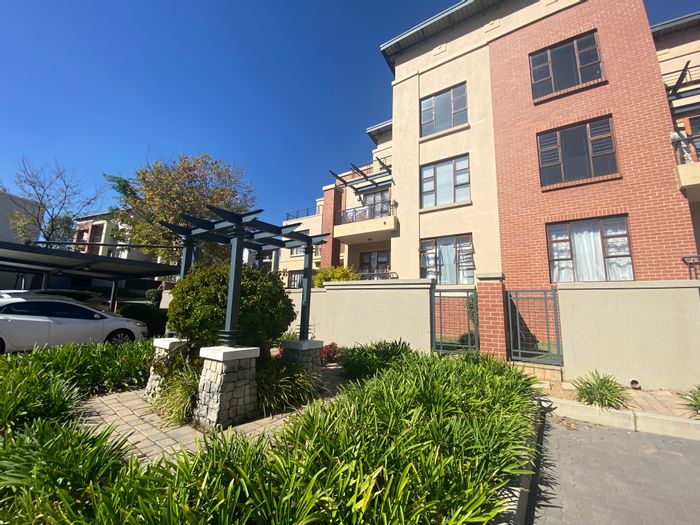 Easy Douglasdale lifestyle with shopping and Gautrain access, ideal for entertaining on the loft's partially covered upper patio — one-bedroom, one-bath with covered parking.