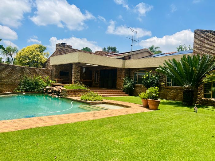 Relaxed family living in boomed-off Gallo Manor with 24-hour security, large garden, private pool and patio — four bedrooms, two bathrooms and double garage.