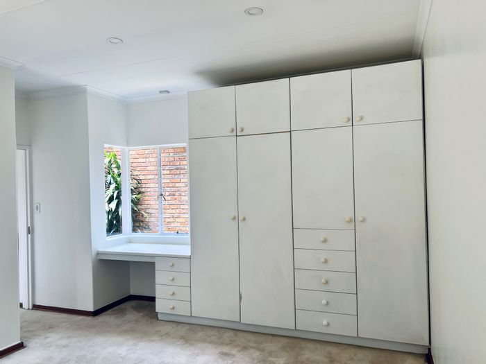 Sunny, multi-level unit in a sought-after 24-hour guarded complex near Sandton CBD and Gautrain, featuring a chef’s granite kitchen, private king-size main suite, garden, 4 beds, 2.5 baths.