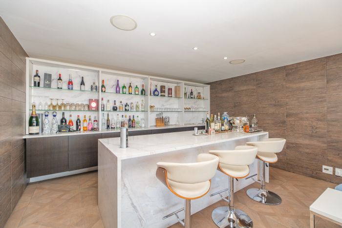 Entertain in luxurious penthouse living with uninterrupted Sandton skyline views, a massive rooftop terrace and stylish bar — fully furnished, three en-suite bedrooms, 3.5 baths and double garage.
