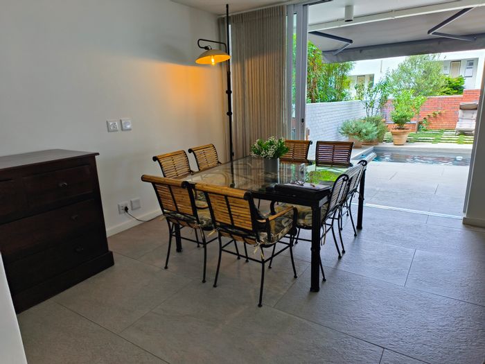Entertainer's apartment minutes from Hyde Park Corner and Melrose Arch, featuring a designer kitchen, heated pool, private gym and garden-backed covered patio; three en-suite bedrooms, two basement bays.