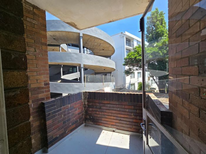 Leafy, private corner apartment opposite Thrupps Centre, ideal for commuters to Illovo, Rosebank and Sandton, with covered patio overlooking lush gardens, one bedroom, bath and covered parking.