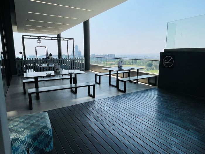 Enjoy elevated Illovo living near Sandton with skyline pool and bar, large patio views, and a granite open-plan kitchen — three en-suite bedrooms, secure building with backup power.
